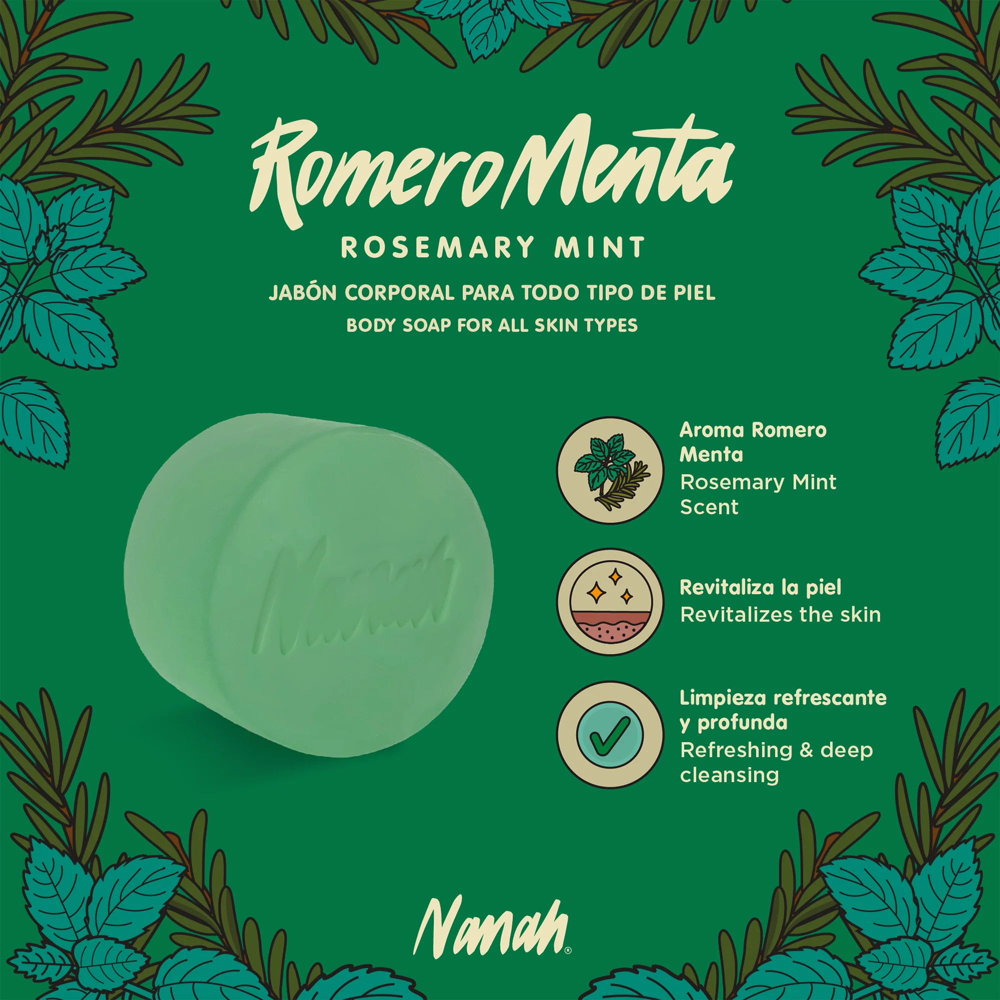 Nuestro Jabón Corporal de Romero Menta tiene propiedades antioxidantes que ayudan a retrasar el envejecimiento de la piel. Además, el romero es un calmante natural, por lo que es perfecto para relajar y refrescar tu piel.