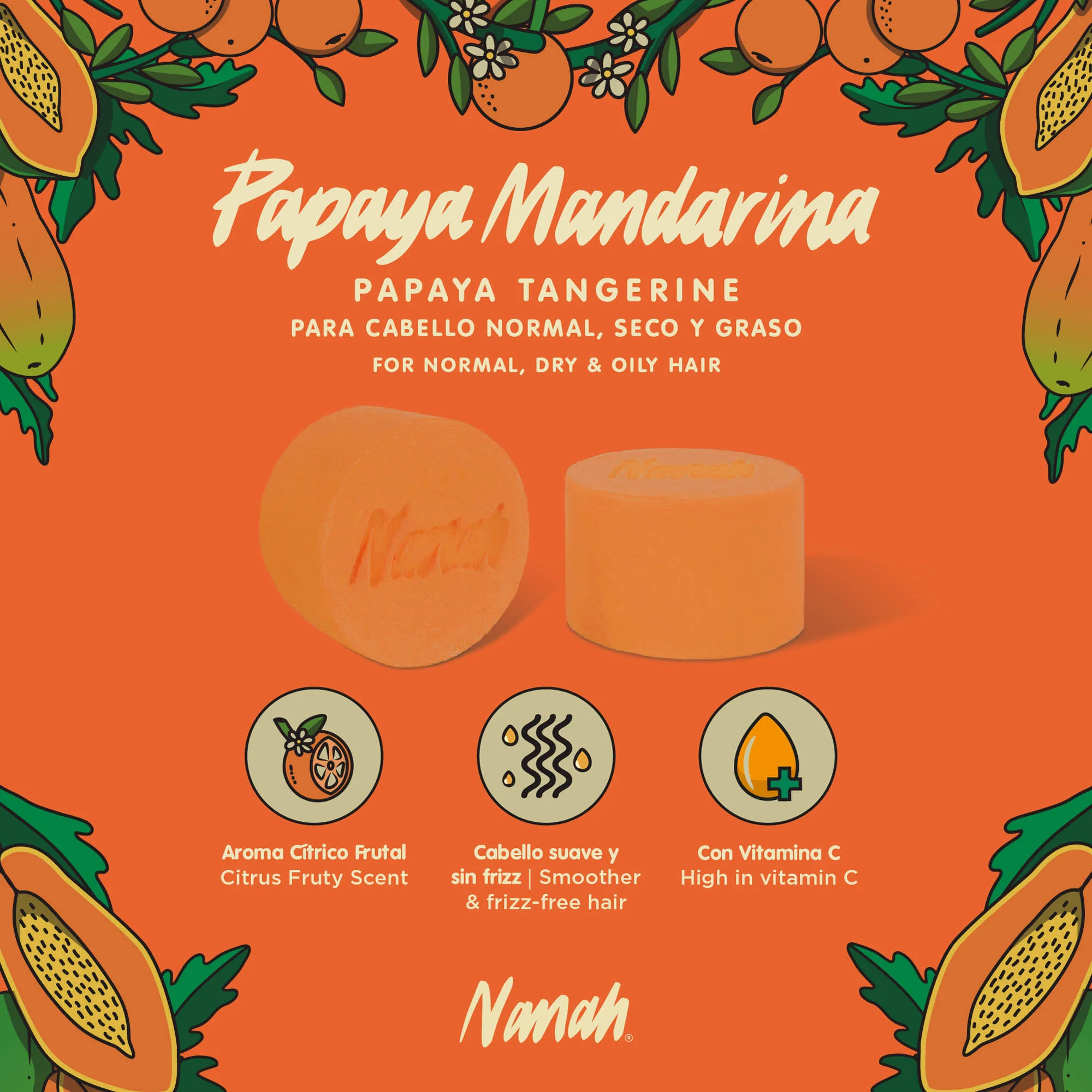 Nuestro Dúo Capilar de Shampoo y Acondicionador de Papaya Mandarina que por sus propiedades astringentes y antioxidantes, ayudan a eliminar la grasa del cabello y lo protegen de la contaminación; además, gracias a su alto contenido de vitamina C presente en los cítricos. Estimula la producción de colágeno, que es clave para tener un cabello sano, grueso, y con brillo, gracias a la papaína presente en la papaya, aporta elasticidad, brillo, y previene la caída.