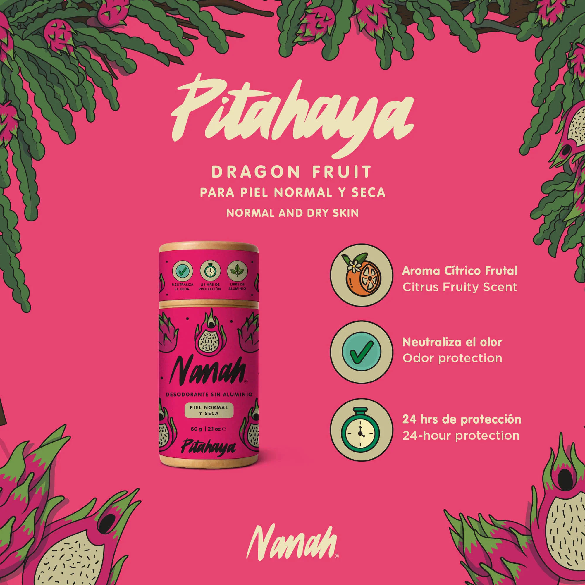 Nuestro Desodorante de Pitahaya es ideal para pieles secas y normales con sudoración moderada, neutraliza las bacterias causantes del mal olor, dejando que tus axilas transpiren naturalmente con un aroma cítrico de la Pitahaya.