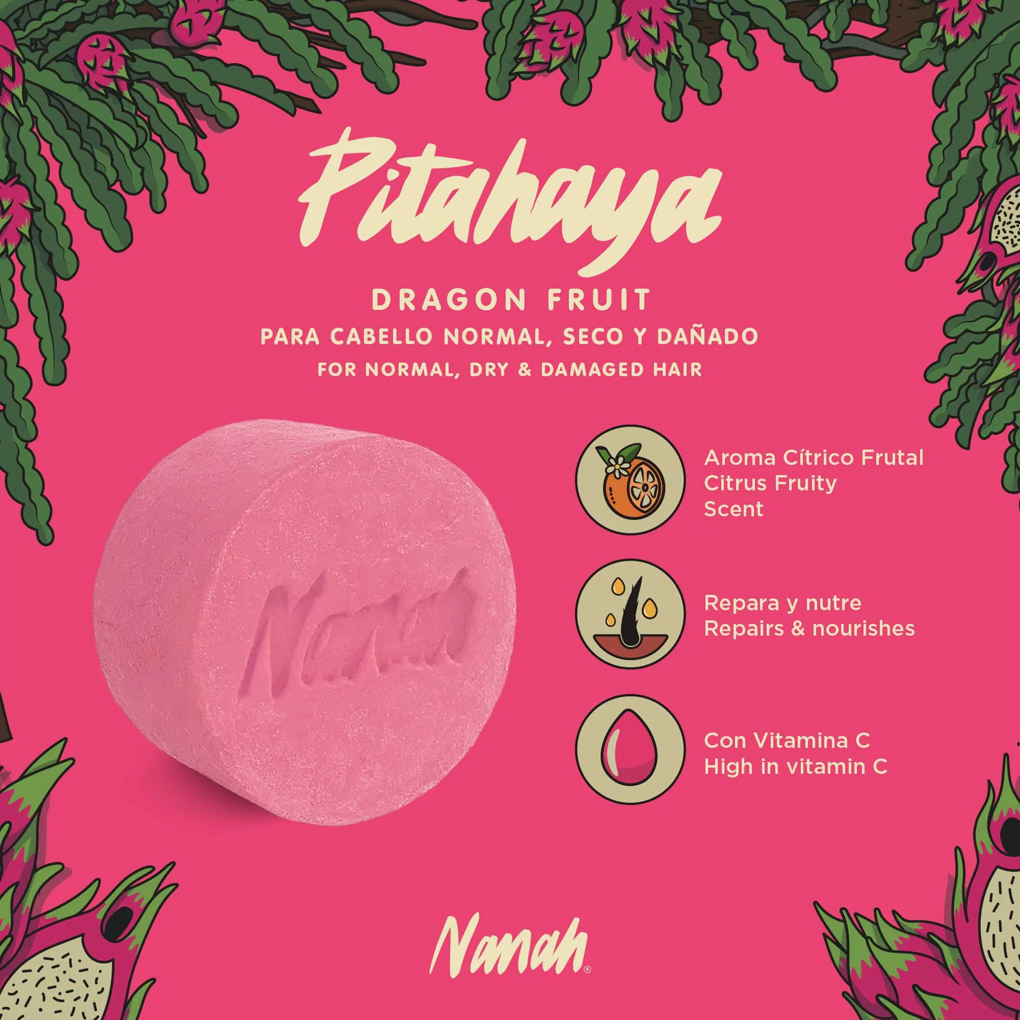 Nuestro Shampoo de Pitahaya es ideal para fortalecer y nutrir el cabello seco y dañado, gracias al alto contenido de Vitamina C y Minerales de la Pitahaya, que reestructuran la fibra capilar. Además, ofrece un cuidado intensivo, restaura la hidratación y fortalece el cabello.